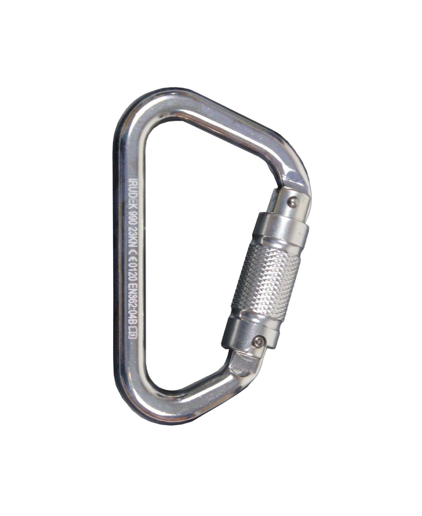 Mosquetón asimétrico de aluminio con cierre automático triple acción.