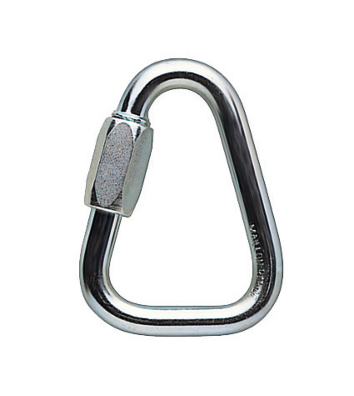 Maillón de acero, forma triangular. Cerrado y apretado con una llave, este maillón de acero constituye un anclaje casi permanente. Compruebe que el maillón trabaje en el o los ejes de trabajo recomendados. Vigile regularmente el bloqueo del casquillo. Evite cualquier presión o rozamiento que podría provocar un desbloqueo o dañar el casquillo. Es importante controlar regularmente el estado del producto y de sus conexiones con los demás equipos del sistema. Asegúrese del correcto posicionamiento de los equipos entre sí. Un maillón ofrece la máxima resistencia según su o sus ejes de trabajo